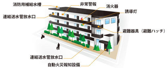 建物に関わる消防設備は、火災の際に確実かつ有効に作動しなくてはなりません。このため消防法では、消防設備を設置するだけではなく、年2回の点検(機器点検・総合点検)または点検結果の報告が義務づけられています。(※点検結果の報告は、建物用途により1年ないし3年に1回の報告となります。)消防事業部ではこれら消防法等に関わる点検を一括受託させていただき、対応・管理をしています。